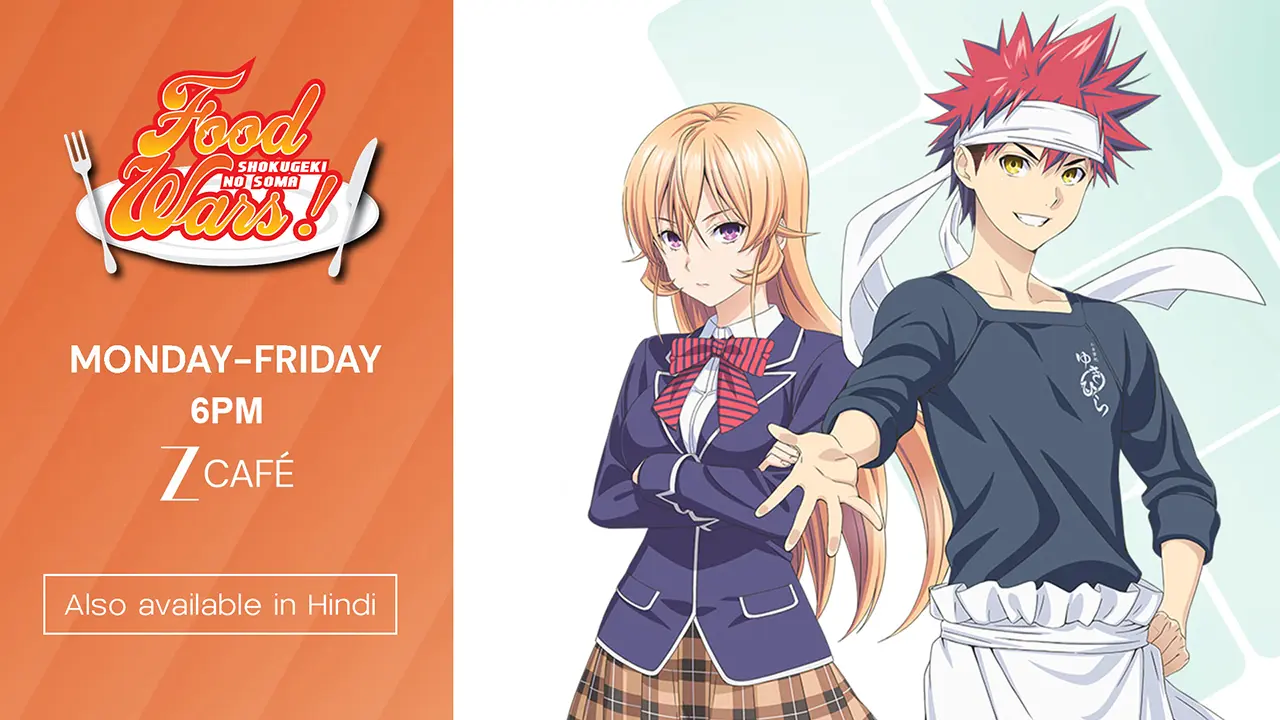 Zee Café is currently airing Food Wars! Season 2 on the channel every weeknight at 6:00 PM. The post will be updated as the current season gets concluded and Zee Café announces the next season.